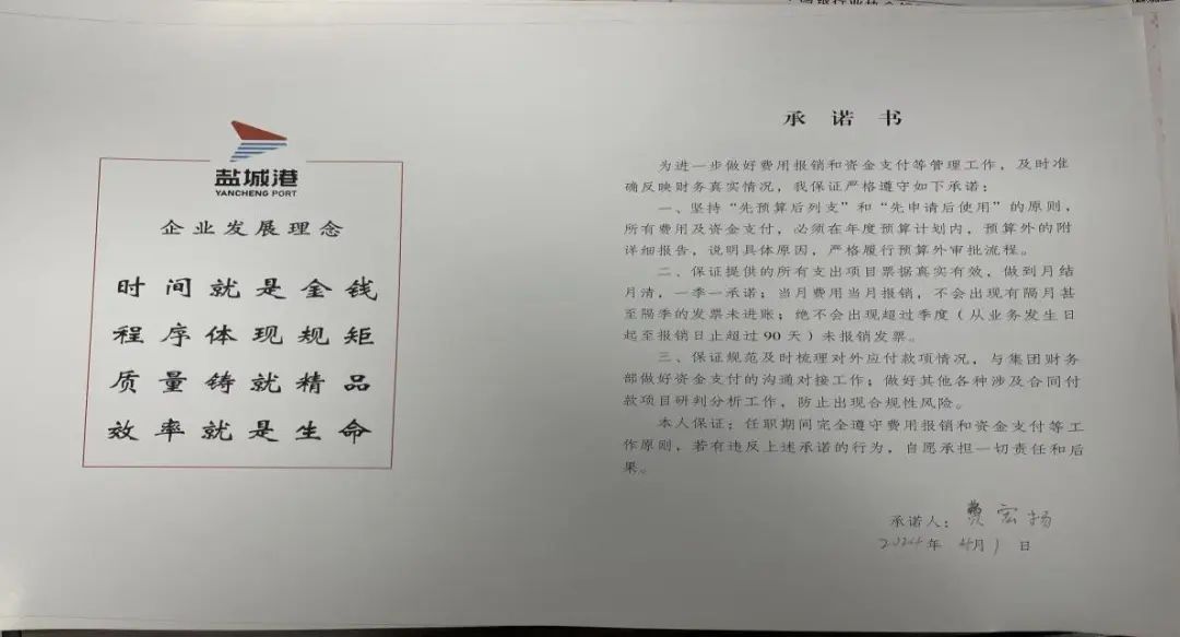 射陽港區(qū)將進(jìn)一步推動風(fēng)險防控體系和規(guī)范管理流程建設(shè)。通過優(yōu)化環(huán)節(jié)、建章立制、閉環(huán)管理,推動合規(guī)管理工作中發(fā)現(xiàn)的問題條條有整改,件件有落實。為建立集團(tuán)首個全面預(yù)算管理示范點貢獻(xiàn)力量。