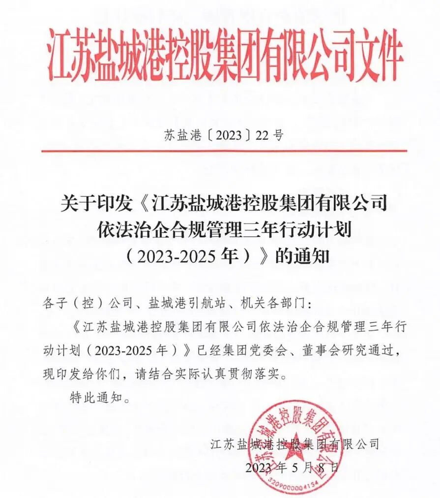 近年來,鹽城港全面開展依法治企合規管理三年行動,在制度體系建設、法律服務效能提升、法治宣傳教育上持續發力,推動法治建設從“基礎保障”向“重要驅動力”轉變,為集團“十四五”高質量發展筑起堅實法治屏障。