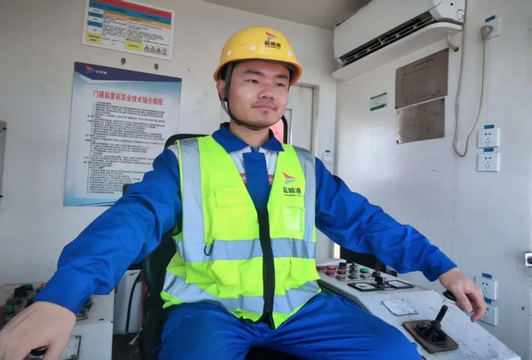 在通用碼頭分公司,門機司機朱培文眼神專注、操作嫻熟。抓斗在他手中精準起落、平穩移動,猶如指揮一場無聲的交響。他說:“國慶堅守崗位,就是我獻給祖國最好的禮物。”