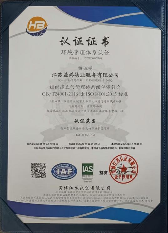 近日,鹽港物業(yè)成功通過ISO系列管理體系認(rèn)證,獲得誠(chéng)信管理體系、環(huán)境管理體系、職業(yè)健康安全管理體系、質(zhì)量管理體系、企業(yè)社會(huì)責(zé)任管理體系五項(xiàng)核心認(rèn)證證書,標(biāo)志著鹽港物業(yè)在規(guī)范化運(yùn)營(yíng)、服務(wù)品質(zhì)提升、社會(huì)責(zé)任踐行等多個(gè)維度實(shí)現(xiàn)全面升級(jí),正式邁入標(biāo)準(zhǔn)化、精細(xì)化管理的新階段。