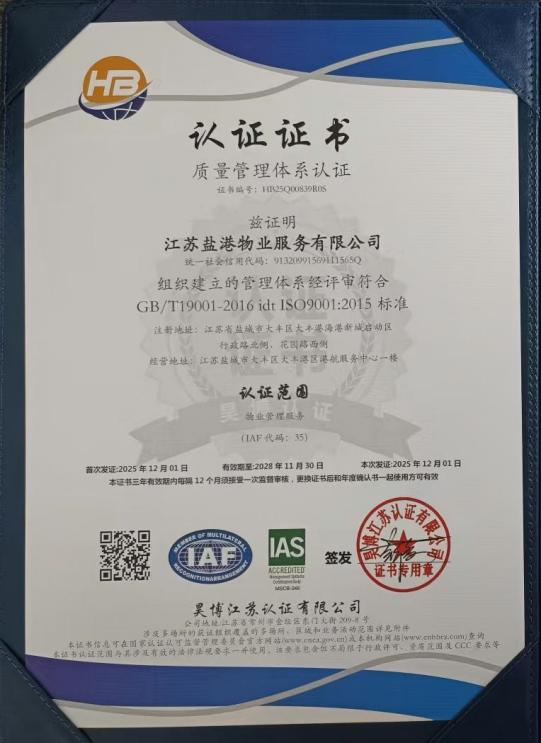 作為鹽城港集團(tuán)的物業(yè)管理企業(yè),鹽港物業(yè)始終秉持“客戶至上、精益求精、責(zé)任擔(dān)當(dāng)” 的核心價(jià)值觀,專注于為綜合體辦公樓、住宅小區(qū)等各類物業(yè)項(xiàng)目提供全方位、高品質(zhì)的物業(yè)服務(wù)。此次認(rèn)證過程中,審核機(jī)構(gòu)依據(jù) ISO 相關(guān)國(guó)際標(biāo)準(zhǔn),對(duì)公司的管理體系進(jìn)行了全流程、多維度的嚴(yán)苛評(píng)審,涵蓋制度建設(shè)、流程執(zhí)行、風(fēng)險(xiǎn)管控、服務(wù)質(zhì)量、環(huán)境治理、員工權(quán)益保障、社會(huì)責(zé)任履行等多個(gè)關(guān)鍵環(huán)節(jié)。通過查閱資料、現(xiàn)場(chǎng)核查、人員訪談等多種方式的全面檢驗(yàn),鹽港物業(yè)的管理體系因其完整性、合規(guī)性、有效性得到了審核專家的高度認(rèn)可,最終順利通過全部認(rèn)證。