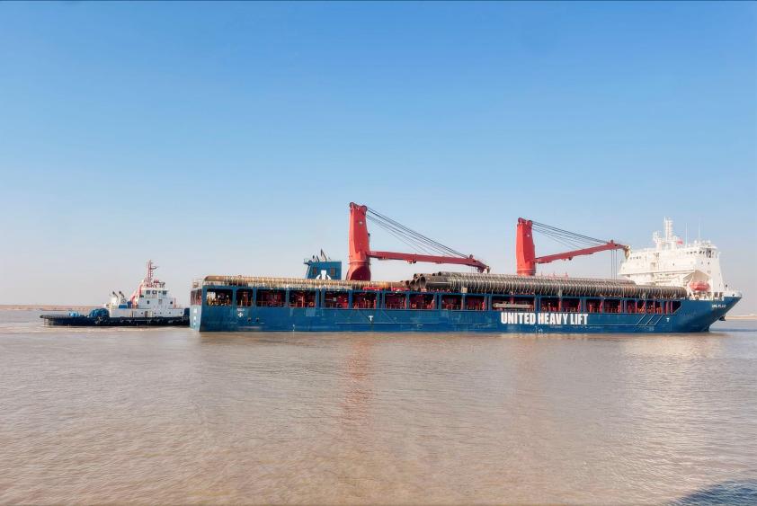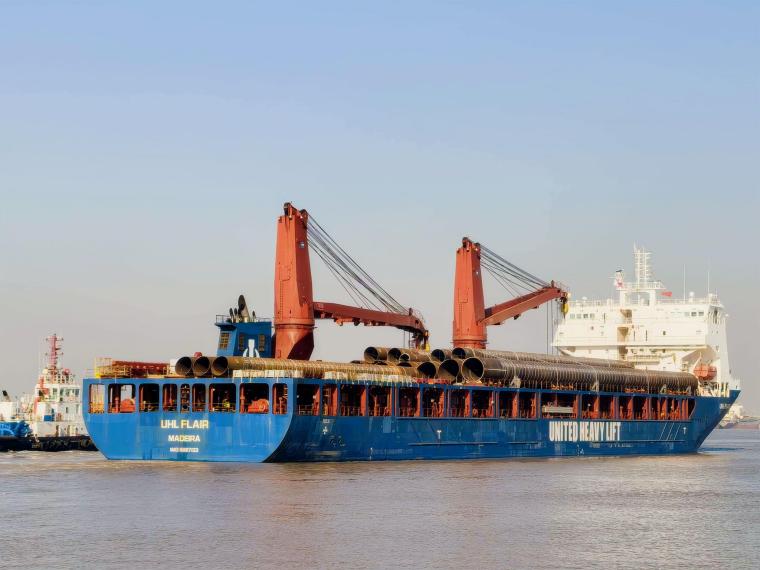 春潮涌動,戰鼓催征。近日,在鹽城港響水港區碼頭,外貿船“UHL FLAIR”輪滿載71件大型油氣管樁,緩緩駛離泊位,駛向阿聯酋扎伊德卡港。這批貨物的順利出運,為港區2026年首月外貿出口業務添上厚重一筆,以“開門紅”的強勁勢頭,掀起了全年向海圖強、開放發展的嶄新篇章。