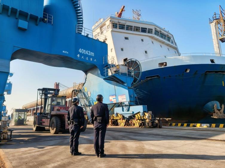 “UHL FLAIR”輪吃水深,為確保其于當日9時灌河口當月最大潮水時段安全出港,海關、海事、邊檢、引航、港口多部門緊密聯動、協同發力,筑牢外貿運輸保障線。海關全程指導關心,進一步完善“船邊直裝”監管模式,精簡通關流程、提升通關效率,有效降低裝船時間,為貨物快速放行保駕護航;海事部門科學優化進出航道船舶調度,精準管控通航秩序,排除各類航行安全隱患;邊檢主動靠前服務,推行網上預報預檢服務,實現邊檢手續“一次辦妥、高效辦結”,大幅縮短船舶在港停留時間;引航站提前一周鉆研最新航道測繪圖,結合潮汐規律量身制定引航方案,確保船舶航行安全可控;響水港區堅持安全底線,實行掛圖作戰,精準測算每件管樁到港與裝船時序,細化環節責任,實現全程高效作業。