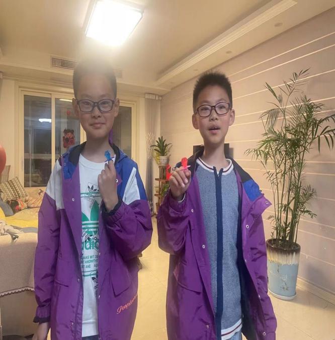 “那天,逍逍遙遙跟爸爸念叨,看中了紅色和藍色的大鉆石戒指糖,說特別漂亮,想買來送給媽媽。小家伙從爸爸那‘騙’到零花錢,興沖沖買回來在我面前晃了一圈,沒一會兒,上面的‘鉆石’就被他偷偷吃掉了。來自兒子的愛,簡單純粹,或許轉瞬即逝,卻足夠暖心。每當翻看這張照片,心里都滿是柔軟的歡喜。”