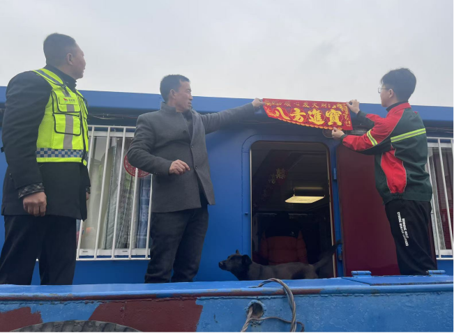 在內(nèi)河航道,往來穿梭的船舶是船民常年漂泊的“流動(dòng)家園”。水上服務(wù)公司緊扣“安全、溫暖、便民”服務(wù)理念,將新春的喜慶與溫暖送到船頭,讓水上驛站成為船民的“新春港灣”。各服務(wù)站早早開展節(jié)前清掃布置,對聯(lián)高掛、窗明幾凈,工作人員攜春聯(lián)與“福”字登船走訪,與船民一同貼福掛聯(lián),讓素樸的船艙煥發(fā)出紅火的新春氣息。得知一戶船家正為女兒操辦婚事,工作人員特意登船道賀,與船家分享“雙喜臨門”的歡欣,讓水上的年味多了份別樣的溫情。