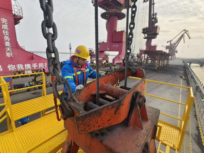 織密設備“防線”,持續保障不停歇。為確保新春保供行動高效落實,港區生產保障組提前謀劃,加強設備巡檢與維護保養,科學安排檢修時間,確保設備始終處于最佳運行狀態。針對易損部件做好備品備件儲備,并組建設備搶修“突擊隊”,實行24小時應急響應機制,確保故障快速閉環,持續保持碼頭機械設備完好率98%以上,為春節期間生產作業筑起堅實的設備安全屏障 。