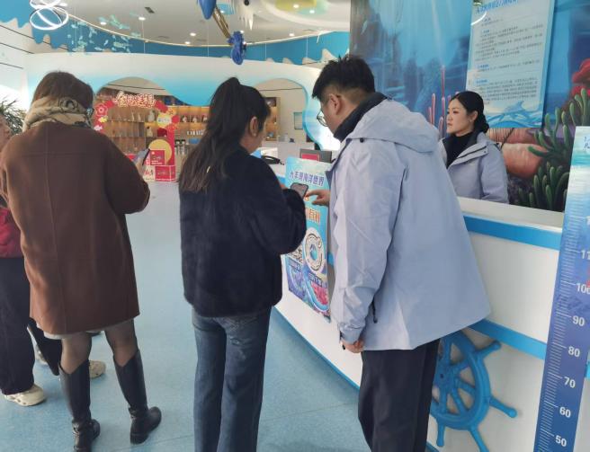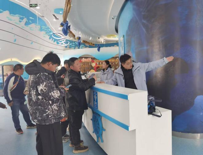面向學生群體,景區推出專屬集章福利活動。 工作人員全程指導游客領取“冒險手冊”,在原神海洋元素實驗站、環保垃圾分類挑戰站提供專業講解與協助。游客集齊3個印章可兌換鑰匙扣、海港主題軟面本等文創產品,集齊7個印章可獲贈溫泉票與海洋館門票組合禮包,創作大賽獲獎者更有機會贏得住宿權益。數字體驗區同步升級,港泊員工協助游客操作虛擬導游小程序,實現與鐘離 “云游” 海鹽產地的沉浸式體驗;在數字藏品兌換處,工作人員為游客講解收藏攻略,助力游客帶走專屬新春紀念。此外,景區還設置原神玩家專屬餐飲區、王者情侶打卡路線,由專人引導游覽。